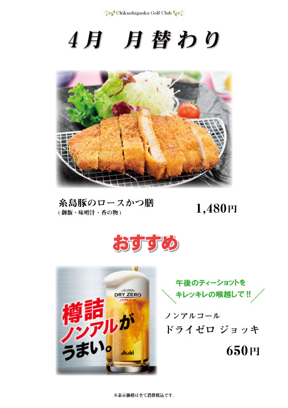 アーカイブ一覧2026年4月2026年3月2026年2月2026年1月2025年12月2025年11月2025年10月2025年9月2025年8月2025年7月2025年6月2025年5月 カテゴリ一覧月例競技結果(入賞者)競技日程イベント・各種ご案内お知らせ未分類レストランメニュー2026年4月 4月の月替わり[ 2026/04/02 ]